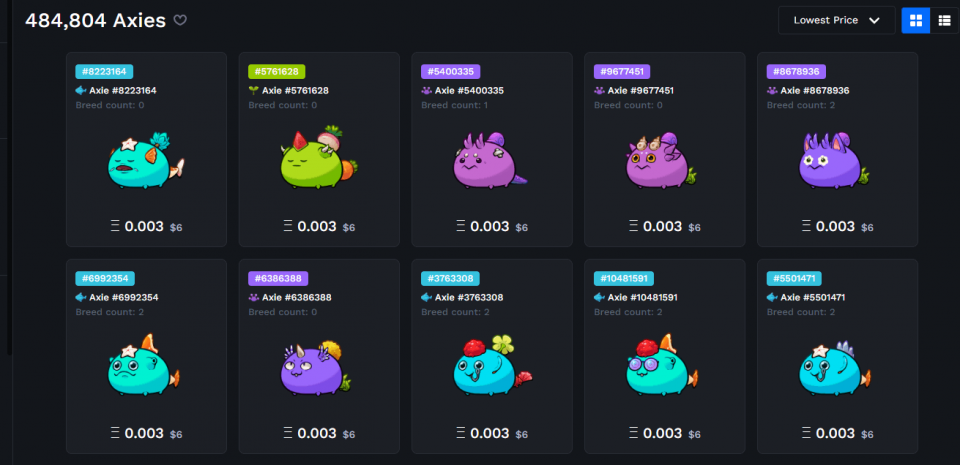 Axie InfinityはNFTゲームであり、Axie(アクシー)という生物の育成や対戦を行わせて、報酬としてSLP/AXS(通貨)を獲得することができます。