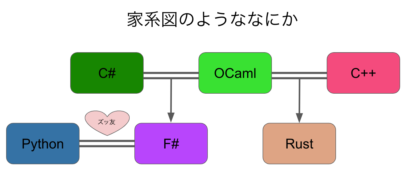そのうちの一つが F# である。 (Rust Compiler はもともと OCaml で書かれており、文法も似通っているためである。)