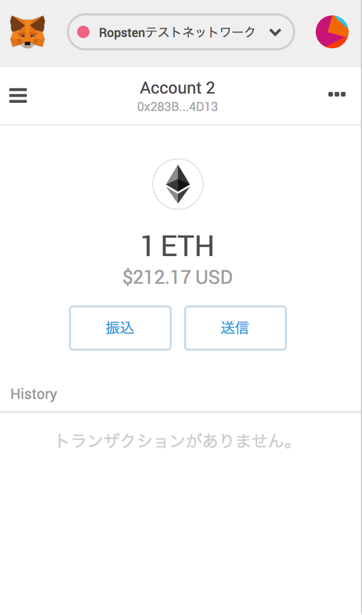 以降の手順はmetamaskがこの状態にあることを想定しています。