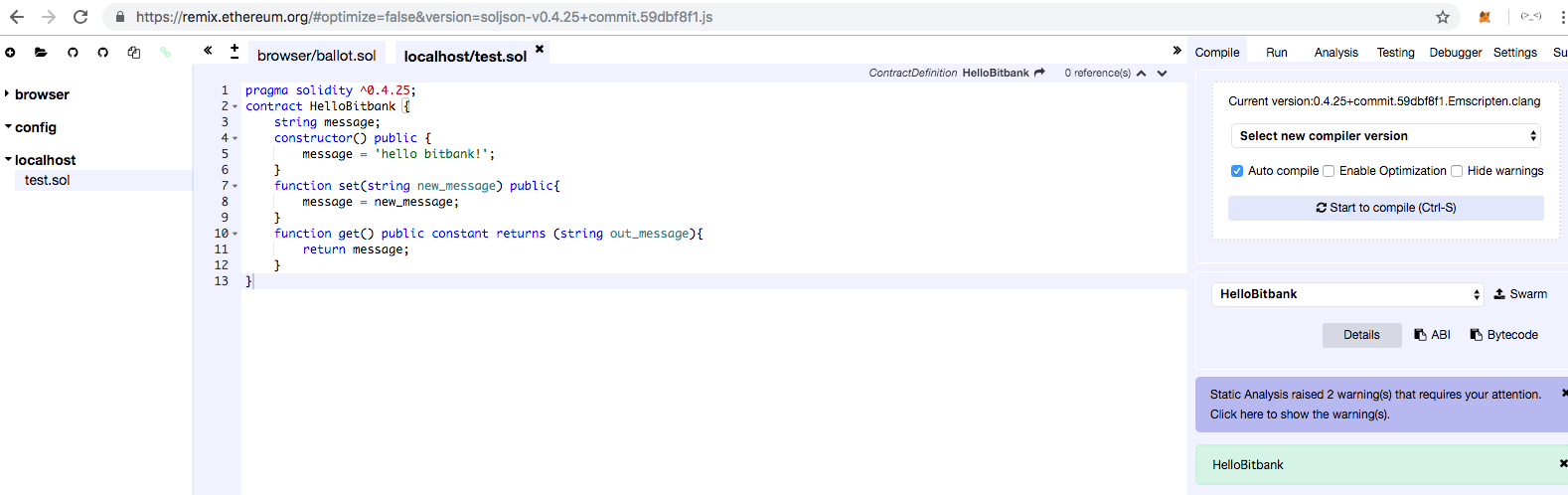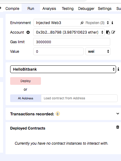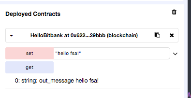 デプロイが完了すると、 Deploy Contracts に今デプロイした HelloBitbank というコントラクトが表示されているので押します。